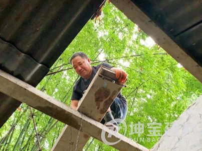 張婆婆丈夫去世多年,膝下無兒無女,家中兩間水泥瓦房子也是當(dāng)?shù)卣疄樗藿ǖ摹埰牌欧孔雍竺媸且黄⒌闹窳直P。大批枯竹因風(fēng)吹老朽,倒在房頂。7月17日五桂村開展固定黨日的時(shí)候,廖興友在入戶走訪的時(shí)候,發(fā)現(xiàn)張婆婆家房子的水泥瓦開始老化,屋脊與瓦的銜接處脫落。問她是否漏水,老人家說不漏。而8月15、16日連續(xù)暴雨,廖興友決定要再去看一看。
