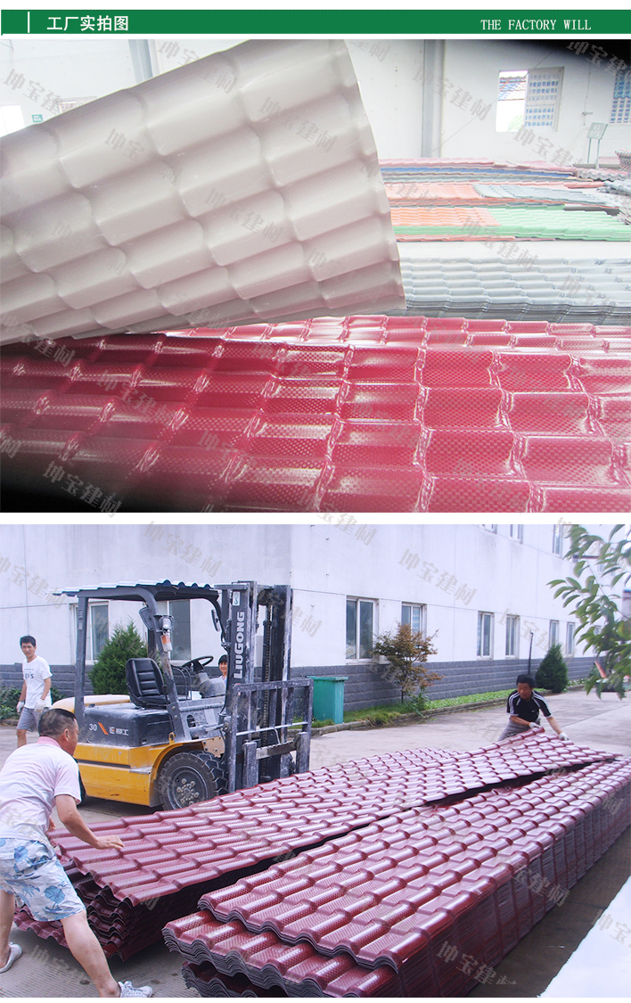 也叫塑料瓦、PVC瓦、輕質瓦,這種瓦是運用高新化學化工技術研制而成的新型建筑材料。具有重量輕、強度大、防水防潮、防腐阻燃、隔音隔熱等多種優良特性,普遍適用于開發區平改坡、農貿市場、商場、住宅小區、新農村建設居民高檔別墅、雨篷、遮陽篷、仿古建筑等。缺點是使用年限短,易褪色、老化等。適用于廠房,車棚,簡易活動房等屋面。