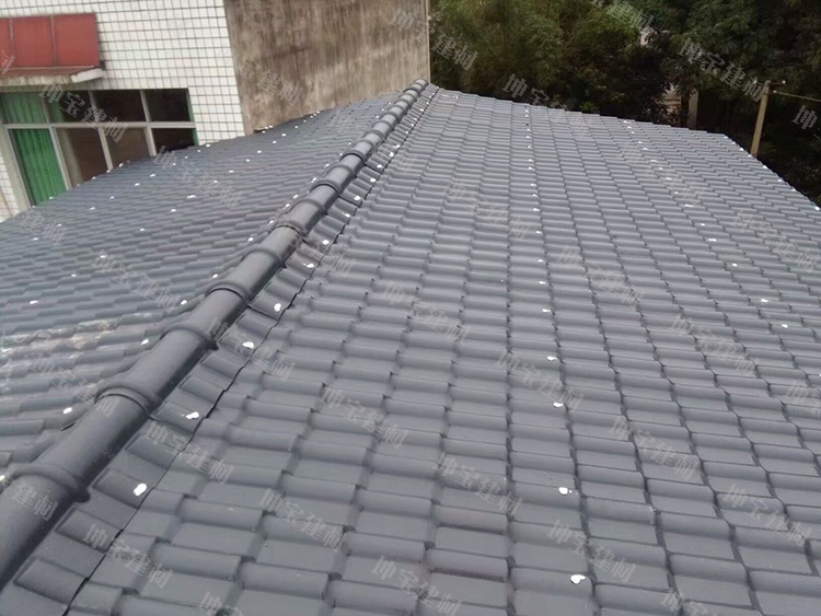這是人字坡兩面流水屋面,L形狀的建筑,中間接縫處就會用到V型水溝,進行排水作用,水溝瓦固定在鋼結構上就可以咯!非常簡單。 1、安裝樹脂瓦需要經過以下幾個步驟:首先需要對屋頂進行檢測,同時還要進行整平,對于彈條要逐步檢查它的平整度,而彈條之間的