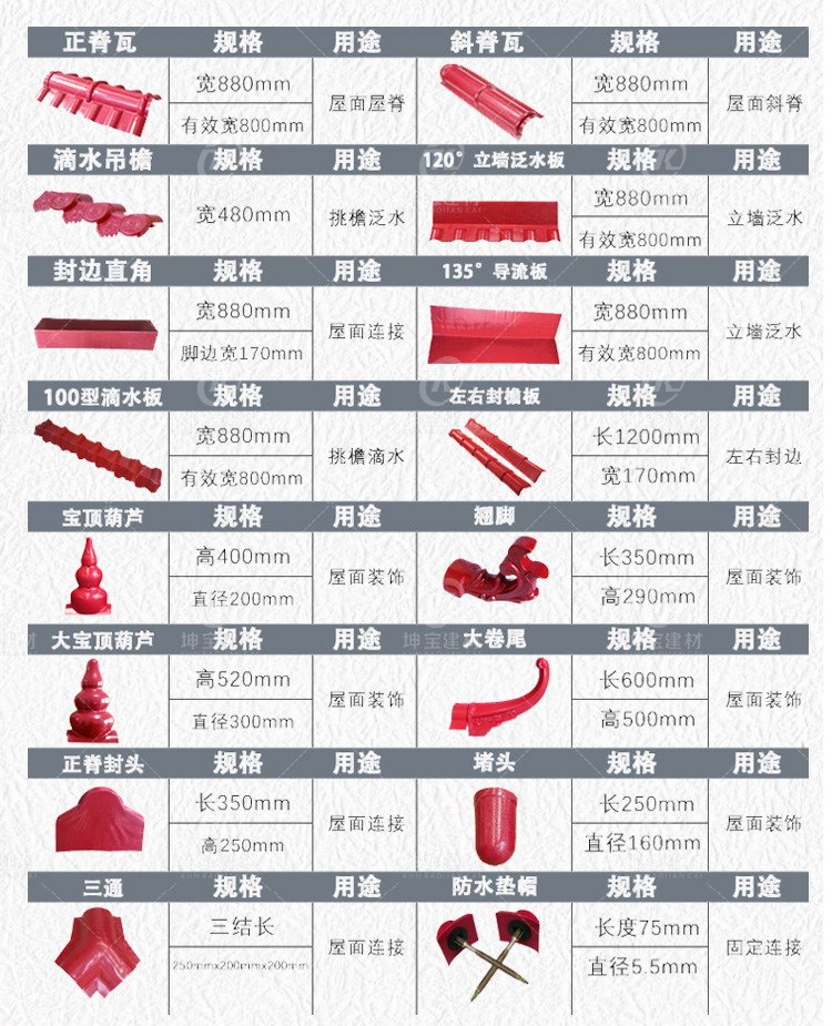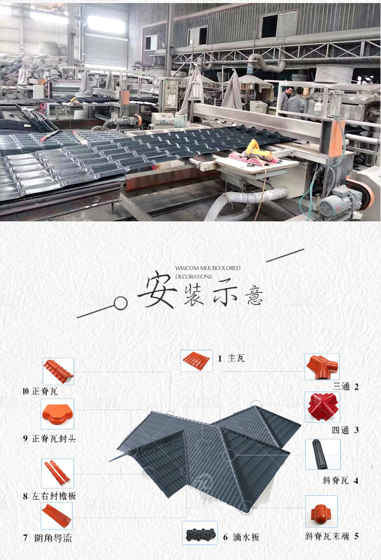 用途:平改坡屋面,別墅屋面,農村自建房屋面,民宅屋面,工業廠房,仿古建筑,涼亭圍墻裝飾等